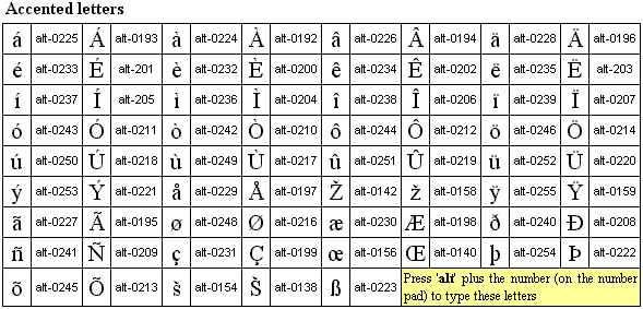 이런 글자를 스마트폰이나 맥북에서 입력하는건 어렵지 않다. 알파벳을 꾹 누르면 여러가지 강세가 나오고 입력하고 싶은 걸 선택하면 된다. 하지만 윈도우에서는 기본적으로 알트(alt)키를 누른 뒤 위 표에 있는 숫자를 키보드 오른쪽에 있는 숫자패드에 입력해야된다.