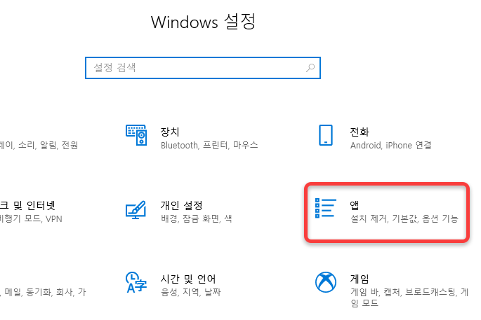 (2) Windows 설정 - 앱으로 들어간다