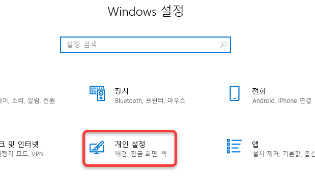 2) 설정 - 개인 설정 클릭