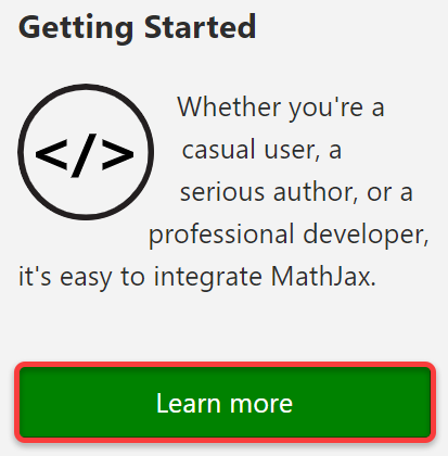 (1) Mathjax 홈페이지에 접속 해 Documentation - Getting Started 밑에 있는 Learn more 버튼을 누른다