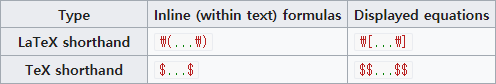 \[...\]또는$$...$$ - 인라인 수식의 형태:
