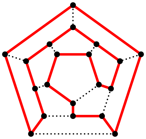 위 그림은 정십이면체(dodecahedron)의 해밀턴 회로입니다.