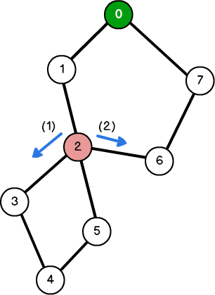 문제는 어떻게 오일러 회로를 만들 것인가인데요, 0번 노드부터 DFS를 통해 시작점까지의 경로를 찾아보겠습니다.