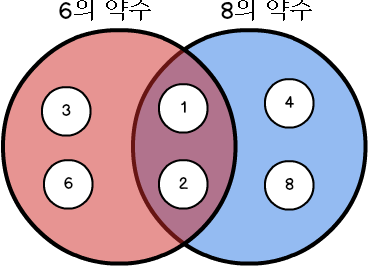 Fig 1.은 6의 약수와 8의 약수를 집합으로 나타낸건데 교집합이 있으니 서로소 집합이 아닙니다.