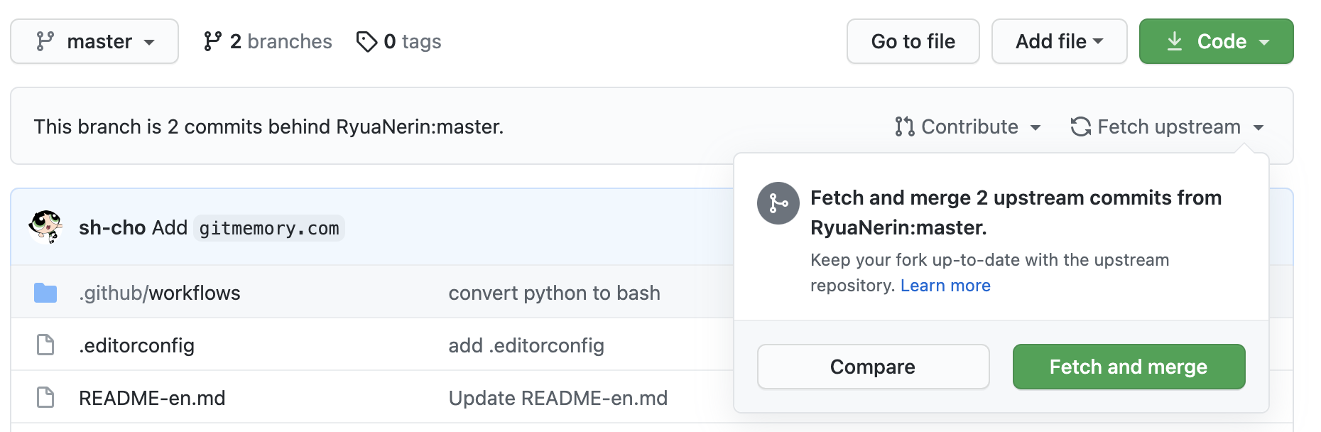 언제부터인지 "Fetch upstream" 버튼이 깃허브에 추가됐네요