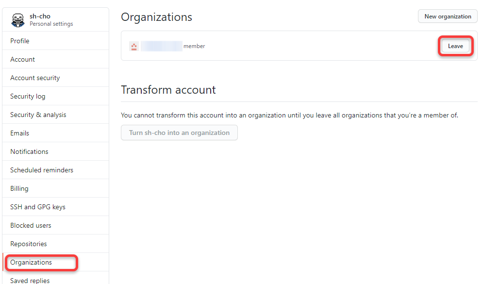 깃허브에 Organization을 만들어서 테스트한 적이 있는데 이제 쓸 일이 없어 그 그룹에서 나오려고 했는데 잘 못찾겠더라고요.
