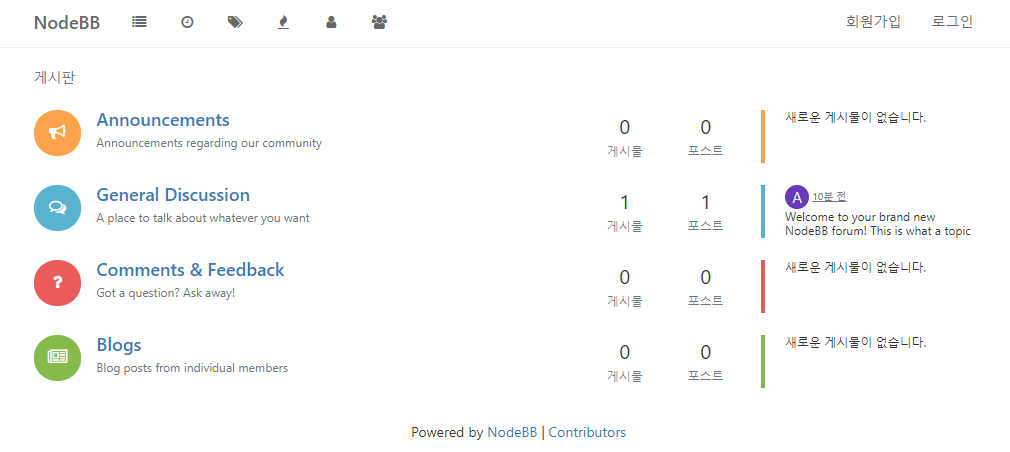 오픈소스(GPLv3) node.js 게시판/포럼 NodeBB(Node.js Bulletin Board)를 설치해봅시다. (github: https://github.com/NodeBB/NodeBB)