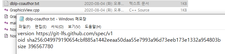 변환 뒤 파일을 확인해보면 lfs 파일 포인터 형식으로 바뀌어져 있습니다.