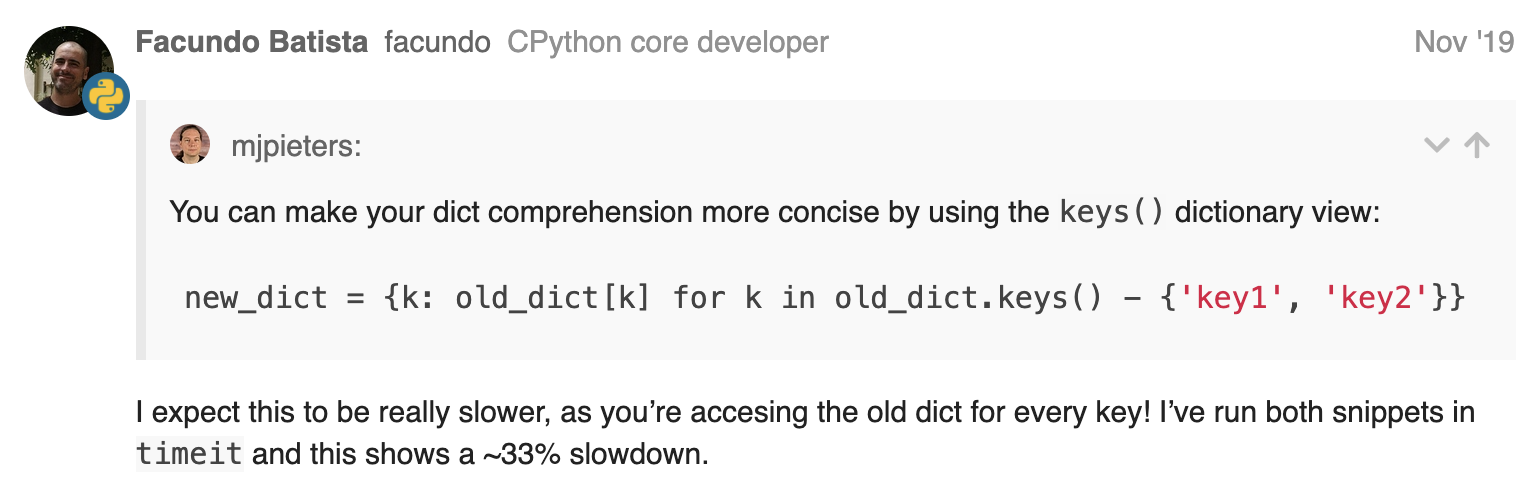 느린 이유는 제외할 모든 키가 old_dict에 한번씩 접근해서? 그런 것이라고 하네요