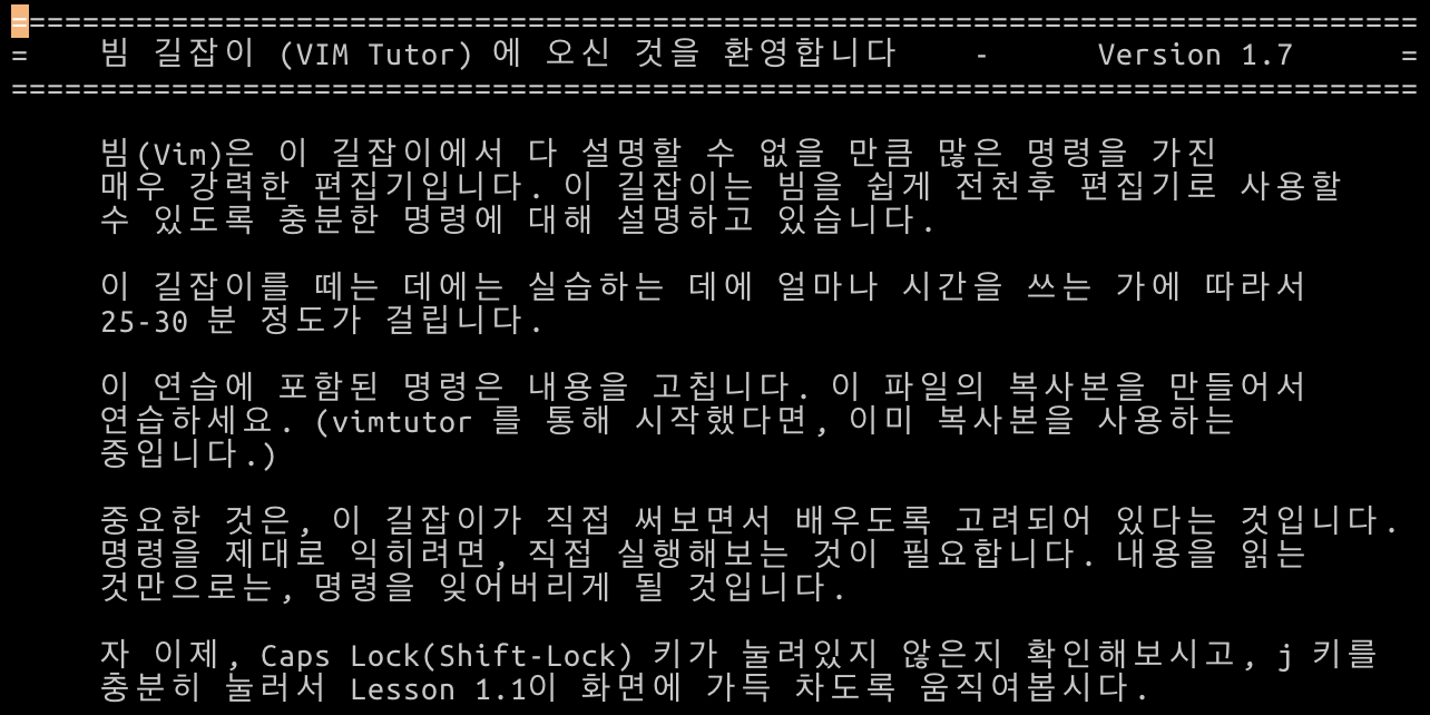 전체 내용을 보고싶은 분은 깃허브(github.com/vim/vim/blob/master/runtime/tutor/tutor.ko.utf-8)에서 확인하시면 되겠습니다.