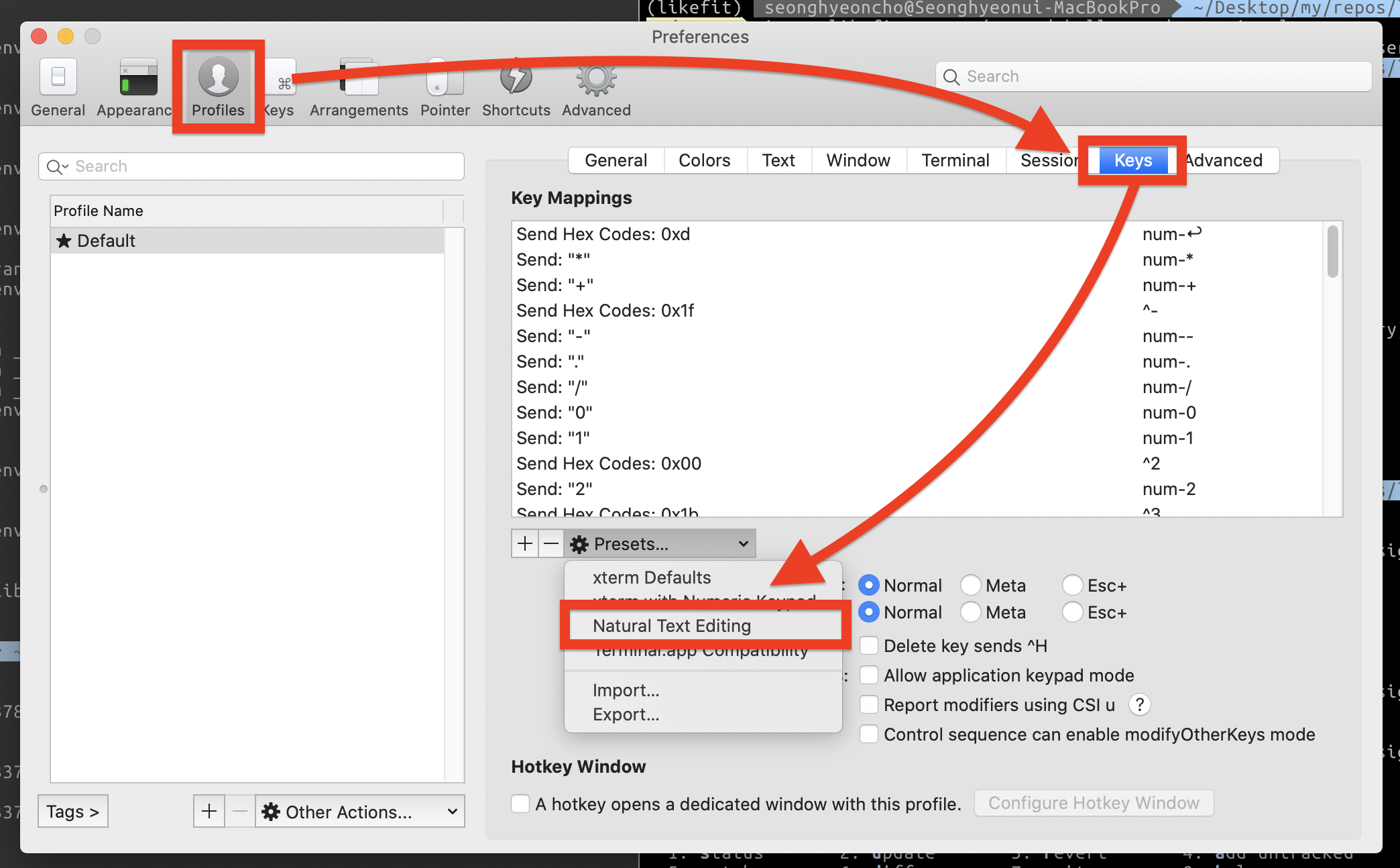 iTerm2를 사용할 때 키셋팅이 불편합니다. 단어 단위 점프를 어떻게 하는지도 모르겠고 그냥 암튼 불편합니다.