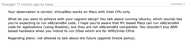 #20192 (Virtual Machine does not start on M1 Mac) – Oracle VM VirtualBox